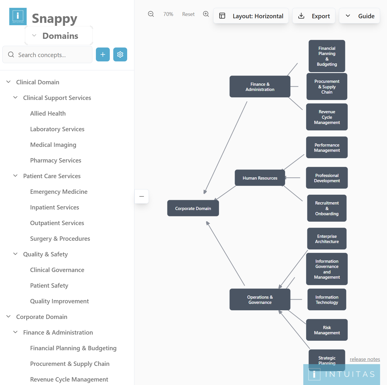 - Each domain encapsulates functional responsibilities, services, processes, information, expertise, costing and governance.