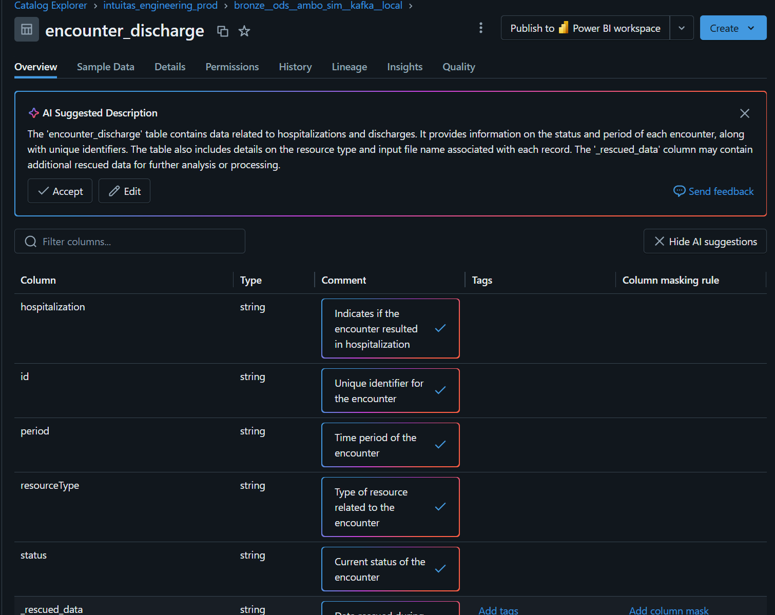 - In Databricks, metadata can be used to track activity: